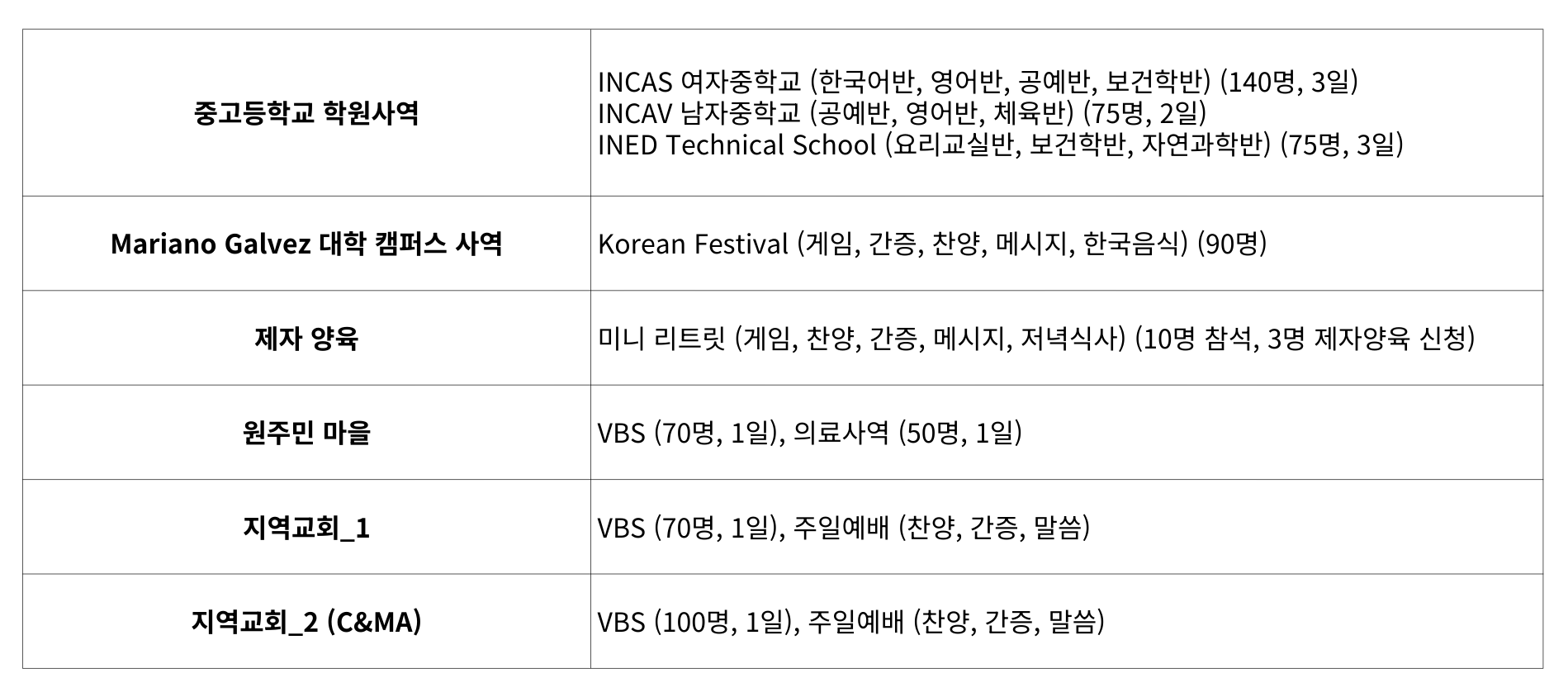 올해 한인총회의 연합단기선교는 7월 21일(화)부터 28일(화)까지 과테말라의 꼬방과 할라파에서 진행됩니다. 참여를 원하시는 목회자들과 교회들은 연락하시기 바랍니다. (문의: 한인총회 연합단기선교 디렉터 성명구 목사: 657-239-6829)